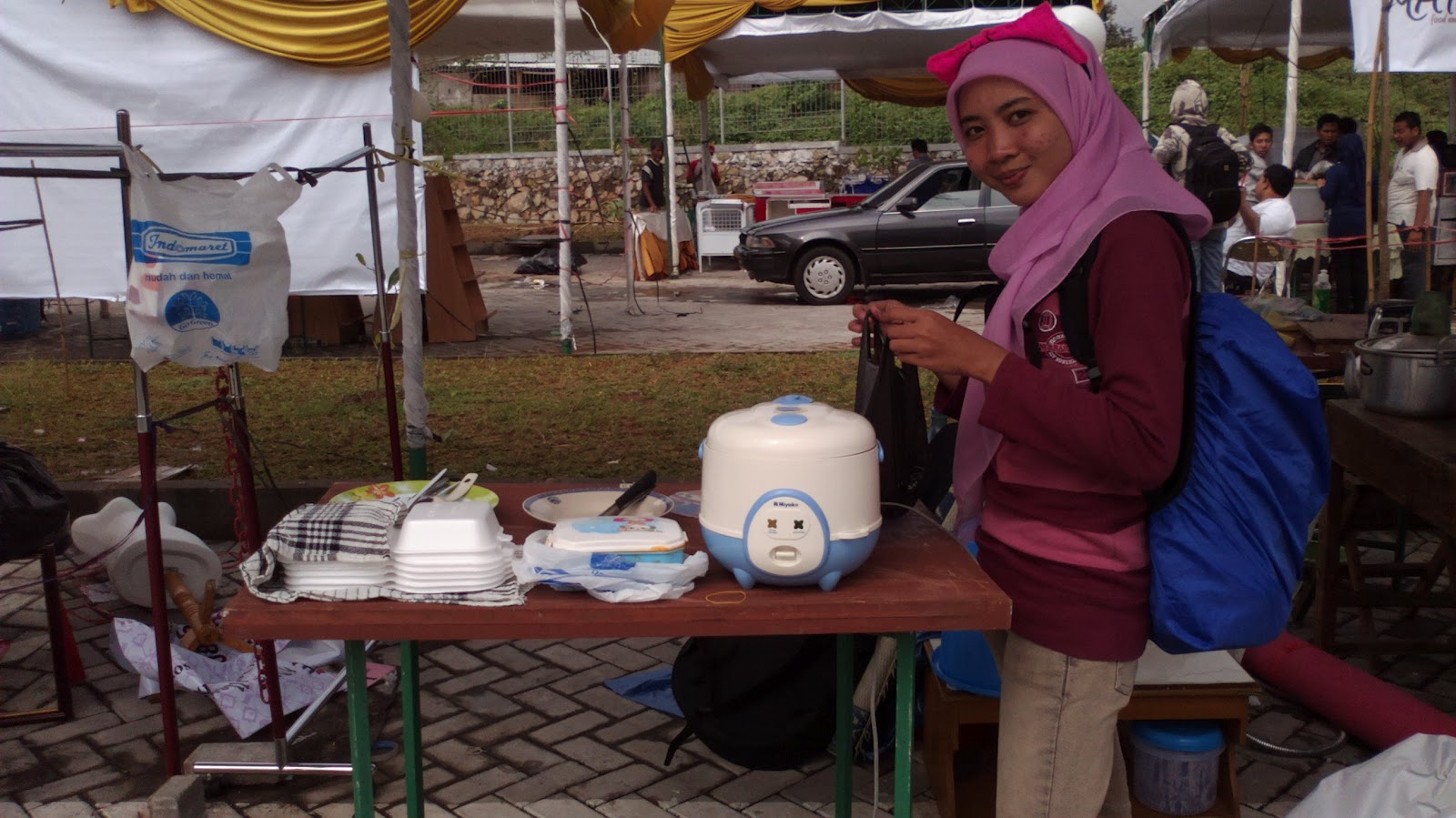 Gw, Asti, Fierda, Umi dan Rina and the gang udah mulai pontang-panting nyiapin sejak hari jumat. Kelompok Fierda yang terdiri dari gw, asti dan umi mau jualan siomay saus steak sama Es Kuwud dari Bali. Kalo Rina and the gang sih mereka barengan ke stand gw karena biar nyewa stand-nya murah, dan Rina itu udah punya dagangan sendiri a.k.a bisnis sendiri (menang di PKM dapet modal 6,5 jt) yaitu TAHU ACI LAKA-LAKA. Gw pas itu nyaranin nama buat stand gw tapi Fierda ternyata udah nentuin namanya KEDAI SAKINAH, Yang *maap ye fir* gw pikir nggak cocok buat kita -___- Gw sih maunya yang ngerock dikit gitu lah!!